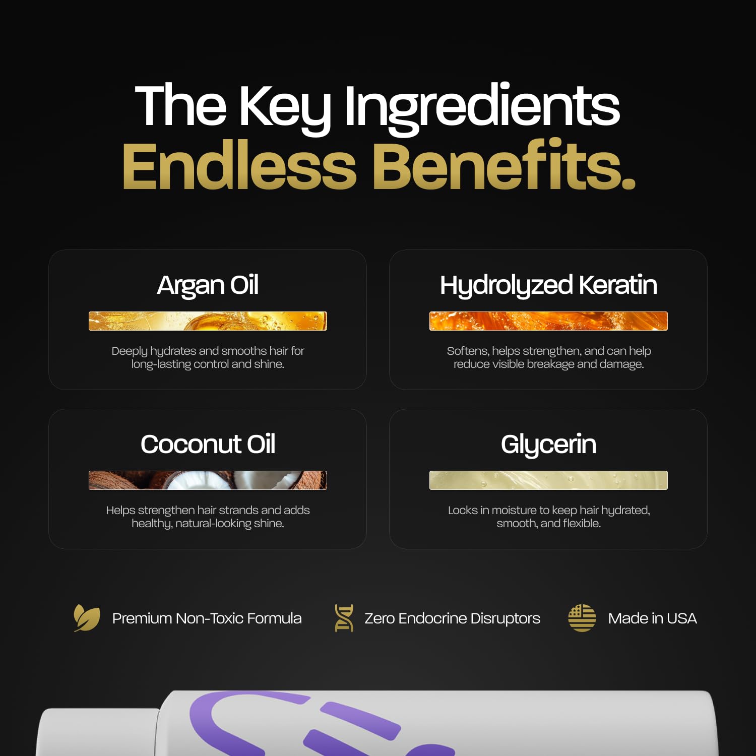 • Aceite de Coco: Conocido por sus propiedades suavizantes y nutritivas, ayuda a que el cabello se sienta más manejable, suave e hidratado mientras mantiene un brillo saludable.
