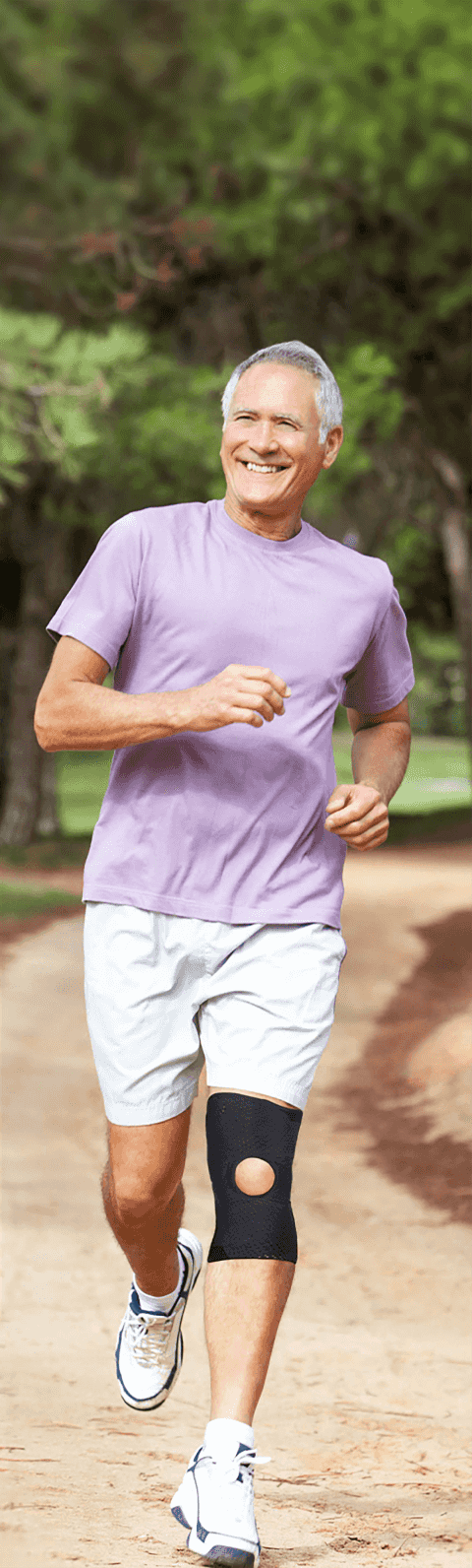 El diseño de patela abierta combinado con una correa de presión en forma de V y estabilizadores de doble resorte proporciona soporte adicional mientras permite el movimiento natural.
