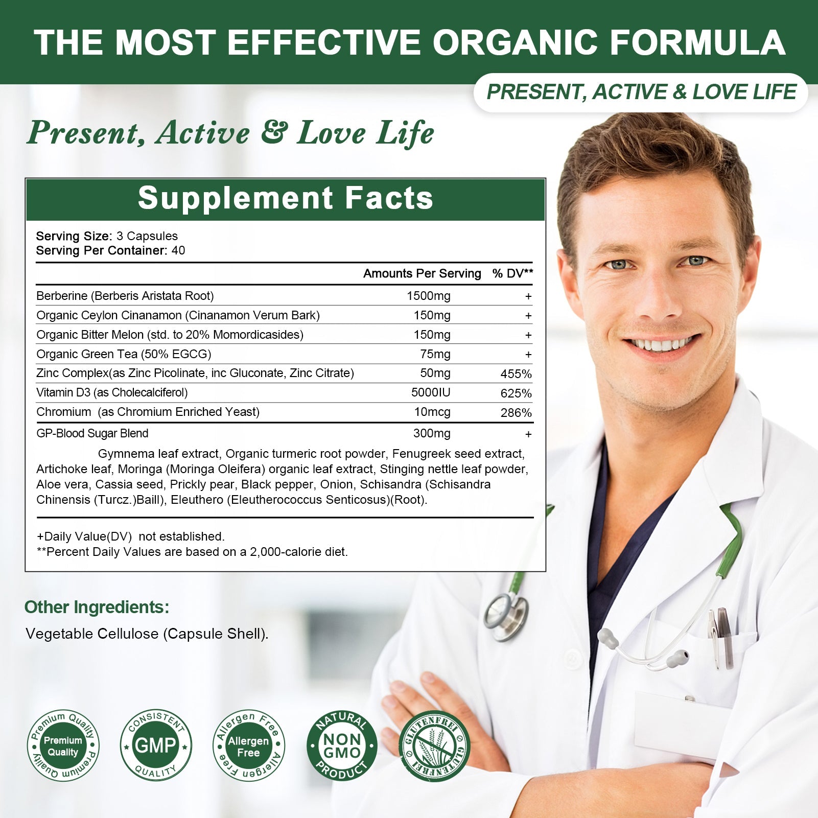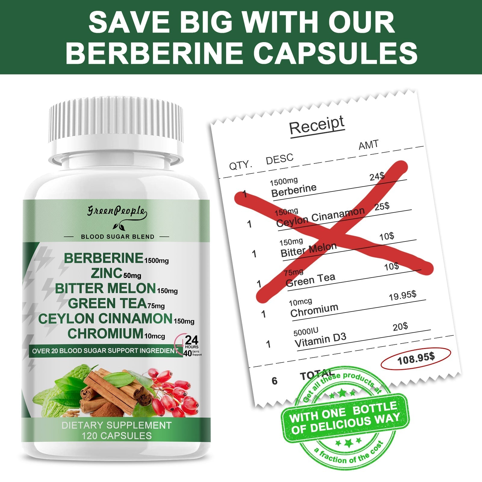 Apoya el Control del Azúcar en Sangre: Gracias a la Berberina y ingredientes como Hoja de Gymnema, este suplemento ayuda a mantener niveles saludables de azúcar en sangre y reduce los antojos de azúcar, dándote un mejor control sobre tu dieta.